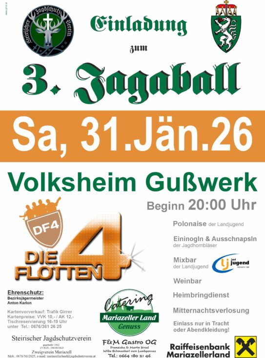 Von 10. bis 12. Juli 2026 findet das Feuerwehrfest der Freiwilligen Feuerwehr Mariazell statt. Nähere Informationen folgen.