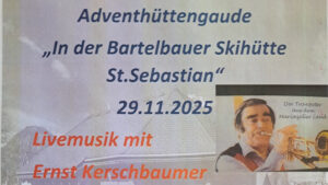 Adventhüttengaude am Samstag, 29. November 2025 in der Bartelbauer Skihütte. Livemusik mit Ernst Kerschbaumer von 15:00 bis 18:00 Uhr.