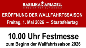 Am Freitag, 1. Mai 2026 wird um 10:00 Uhr mit einer Festmesse in der Basilika Mariazell die diesjährige Wallfahrtssaison feierlich eröffnet.